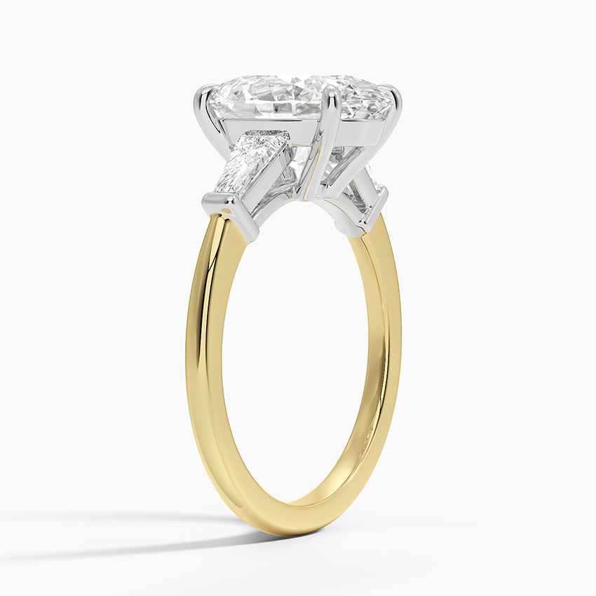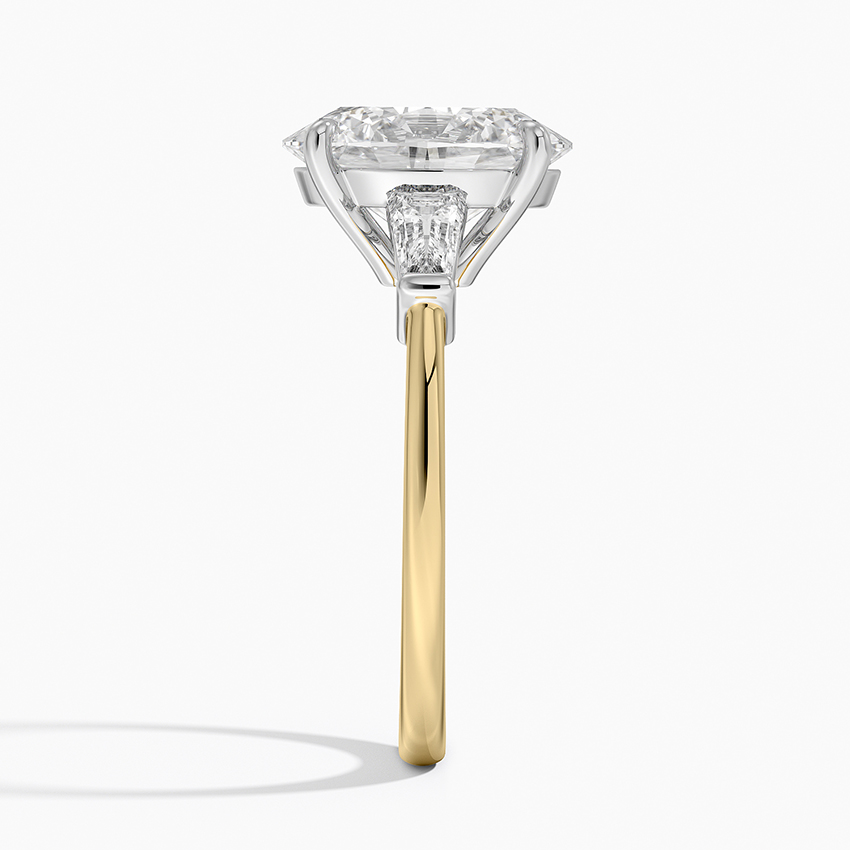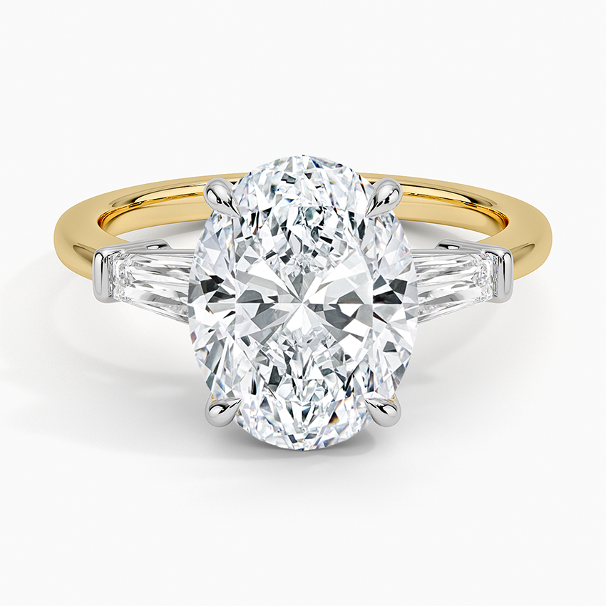 This stunning 3 CT Oval Cut Lab-Grown Diamond Engagement Ring is designed in a refined claw prong setting that emphasizes the clean lines of the emerald cut. Two baguette-shaped accent stones add sleek brilliance, giving this ring a sophisticated and timeless look.